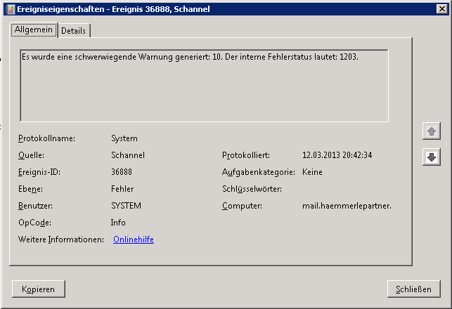 Folgender Eventlog-Eintrag erscheint unregelämssig.