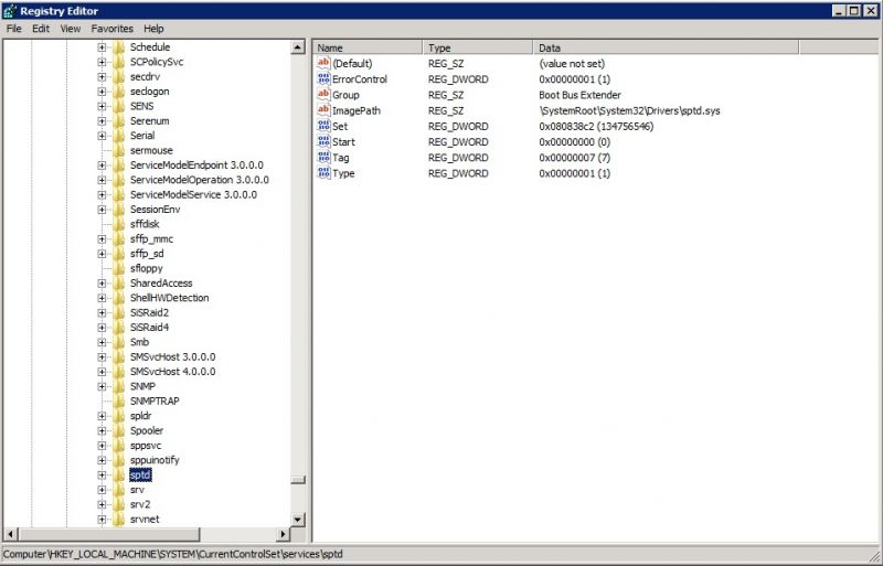 [HKEY_LOCAL_MACHINE\SYSTEM\CurrentControlSet\services\sptd] den Schlüssel "ImagePath" wie folgt an: